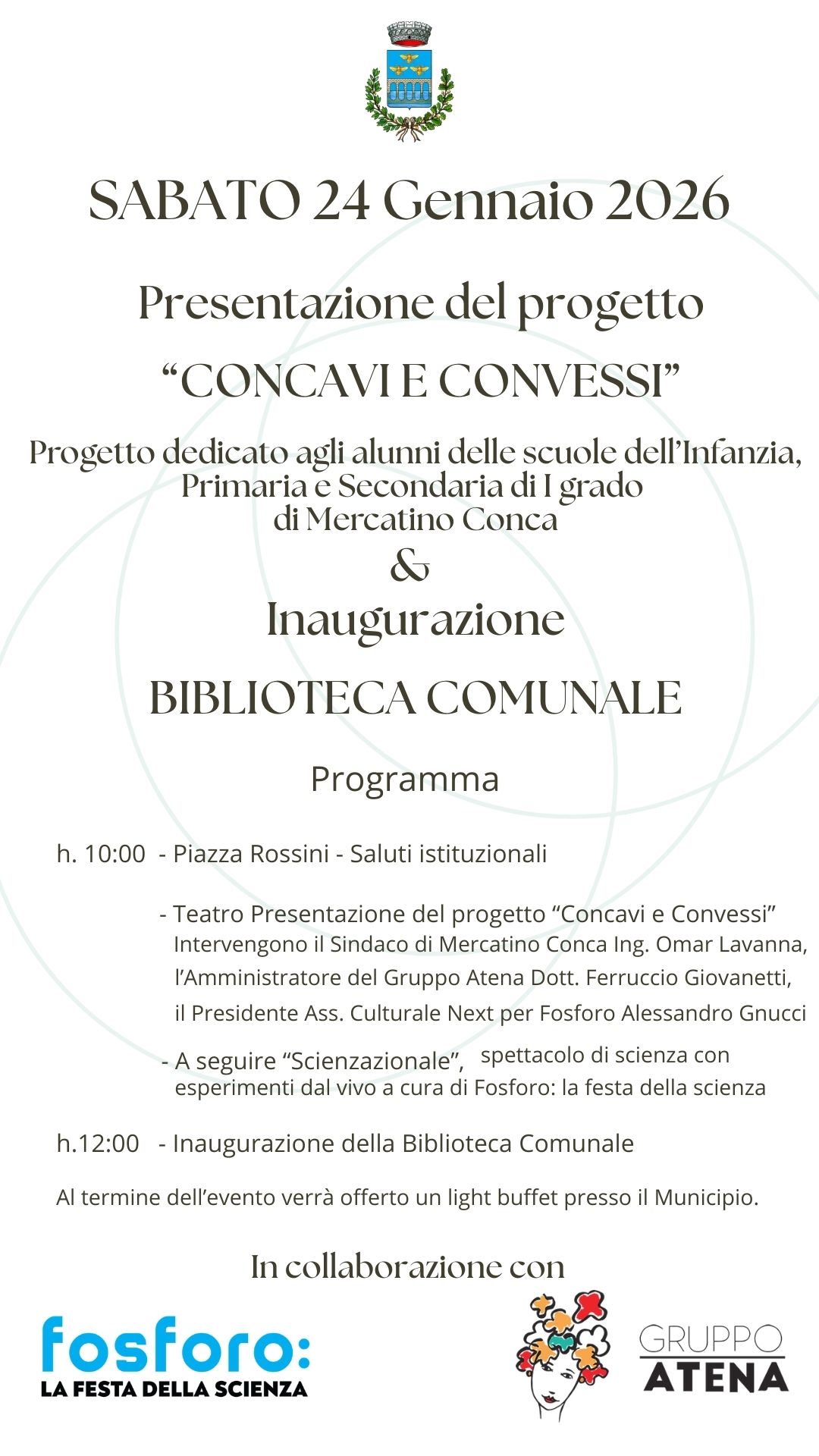 Sabato 24 gennaio alle ore 10 presso il teatro comunale sarà presentato il progetto "Concavi e Convessi" dedicato agli alunni delle scuole dell'Infanzia, Primaria e Secondaria di I grado di Mercatino Conca.